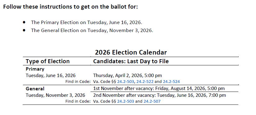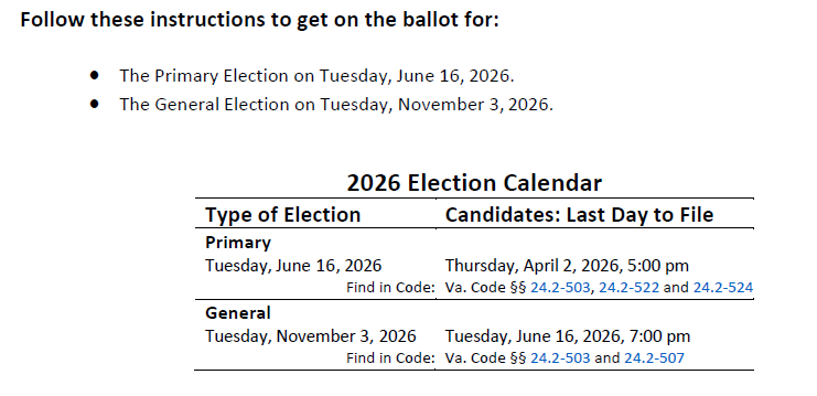 Link: Virginia Dept. of Elections: Becoming a Candidate